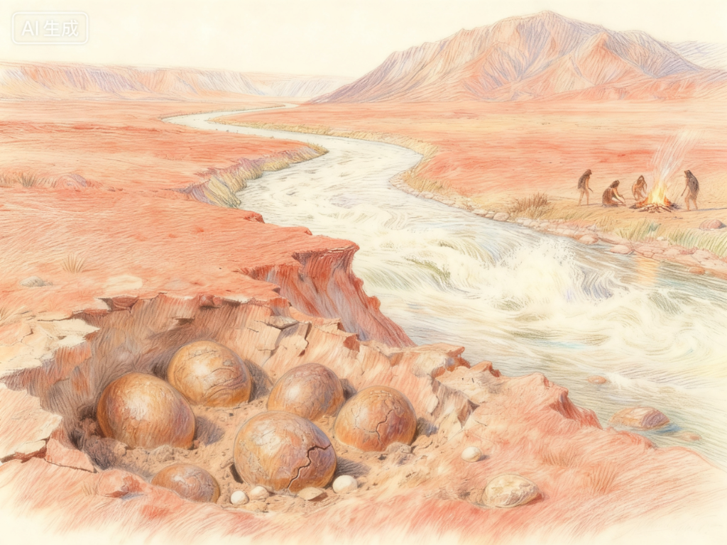 构成于距今约8600万年前的青龙山恐龙蛋化石群,坐落湖北省十堰市郧阳区汉江南岸一侧,是全世界恐龙蛋化石最会集、最无缺的区域之一。青龙山恐龙蛋化石遗址内,长时间散布着大面积的鹅卵石,这些鹅卵石从何而来,又缘何集合于此?这一疑问招引了科研人员的重视,继而提醒出古汉江演化或曾串起恐龙蛋化石与古人类活动的相关。